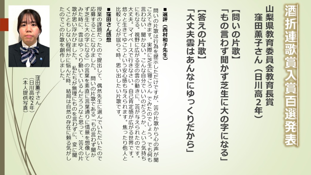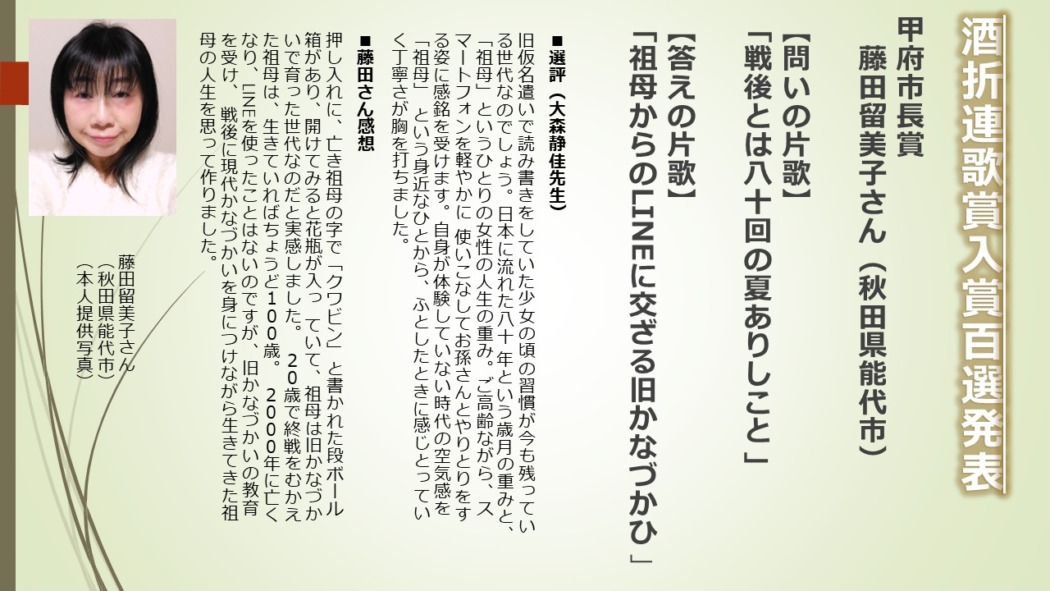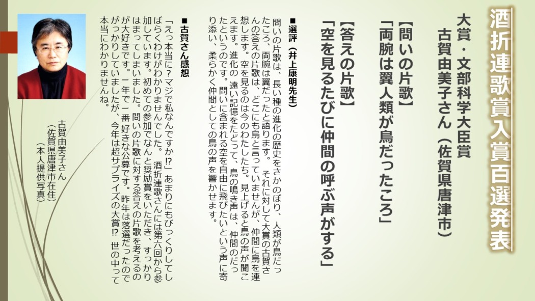 第二十七回酒折連歌賞入賞百選発表