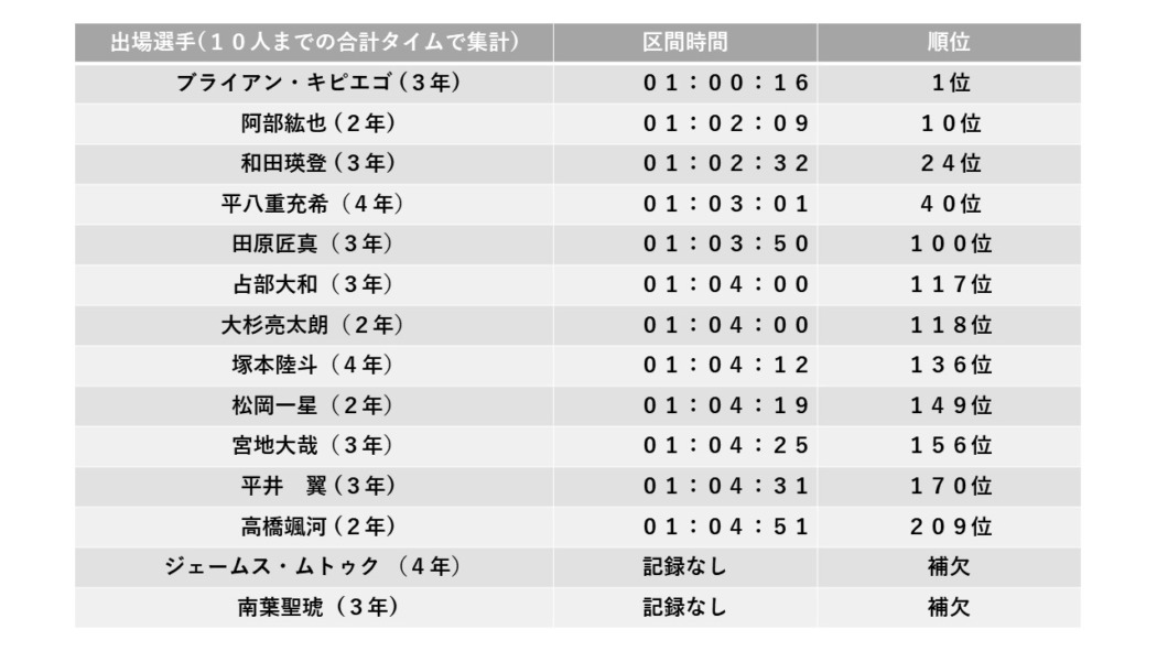 山梨学院大総合記録 21.0975km (10:32:44) 通過順位3位