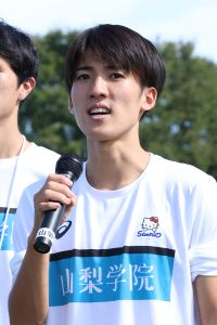 大会後、山梨学院大学関係者、陸上競技部や保護者、OBなどの前で結果報告会を行った。はじめに出場選手を代表して平八重充希副主将は「走った選手全員が自分の持てる力を発揮できました。走った選手は12人ですが、応援に回った選手、サポートしてくれた方々の力で勝ち取った3位だと思います。本選に向け、必ずシード権獲得に向けやっていきます。これからも応援よろしくお願いします」と挨拶。続いて弓削征慶主将は「結果としては3位通過という順位で本選出場でき、一時は1位突破できるのではないかというくらい選手は頑張ってくれました。これまでの練習が間違いではなかったという走りをしてくれました。本選では必ずシード権を獲得しますのでメディアのみなさんももっと注目をしてください」と周囲を笑わせた。