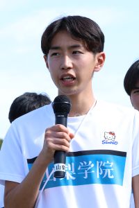 最後に大﨑悟史監督が挨拶を行った。冒頭、応援に駆けつけてくれた皆さんに謝意を述べ、また、選手起用について説明し自身が求める走りをしてくれたと話した。続けて「選手は今回の成績に手応えを感じてくれたと思うので本選に向けて励んでくれると思います。他の部員も箱根に向けて力をつけている選手もいますので、これからは箱根駅伝の16人のメンバー争いをしつつチームはシード権獲得に向けていきたい」と本選への意気込みを述べた。